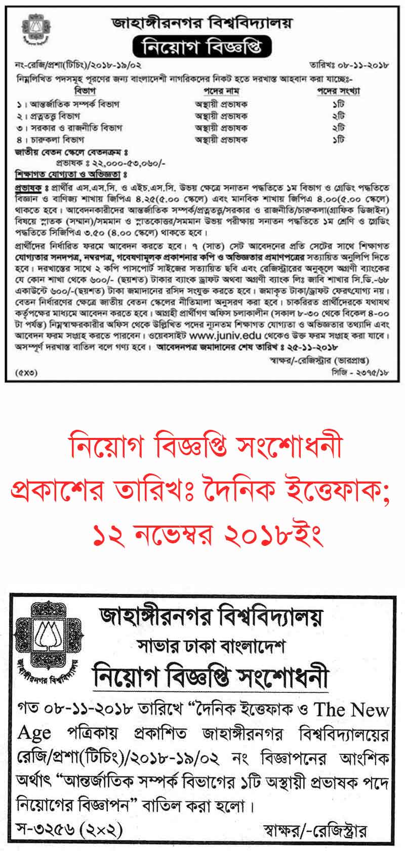 অস্থায়ী প্রভাষক - চারুকলা বিভাগ জাহাঙ্গীরনগর বিশ্ববিদ্যালয়